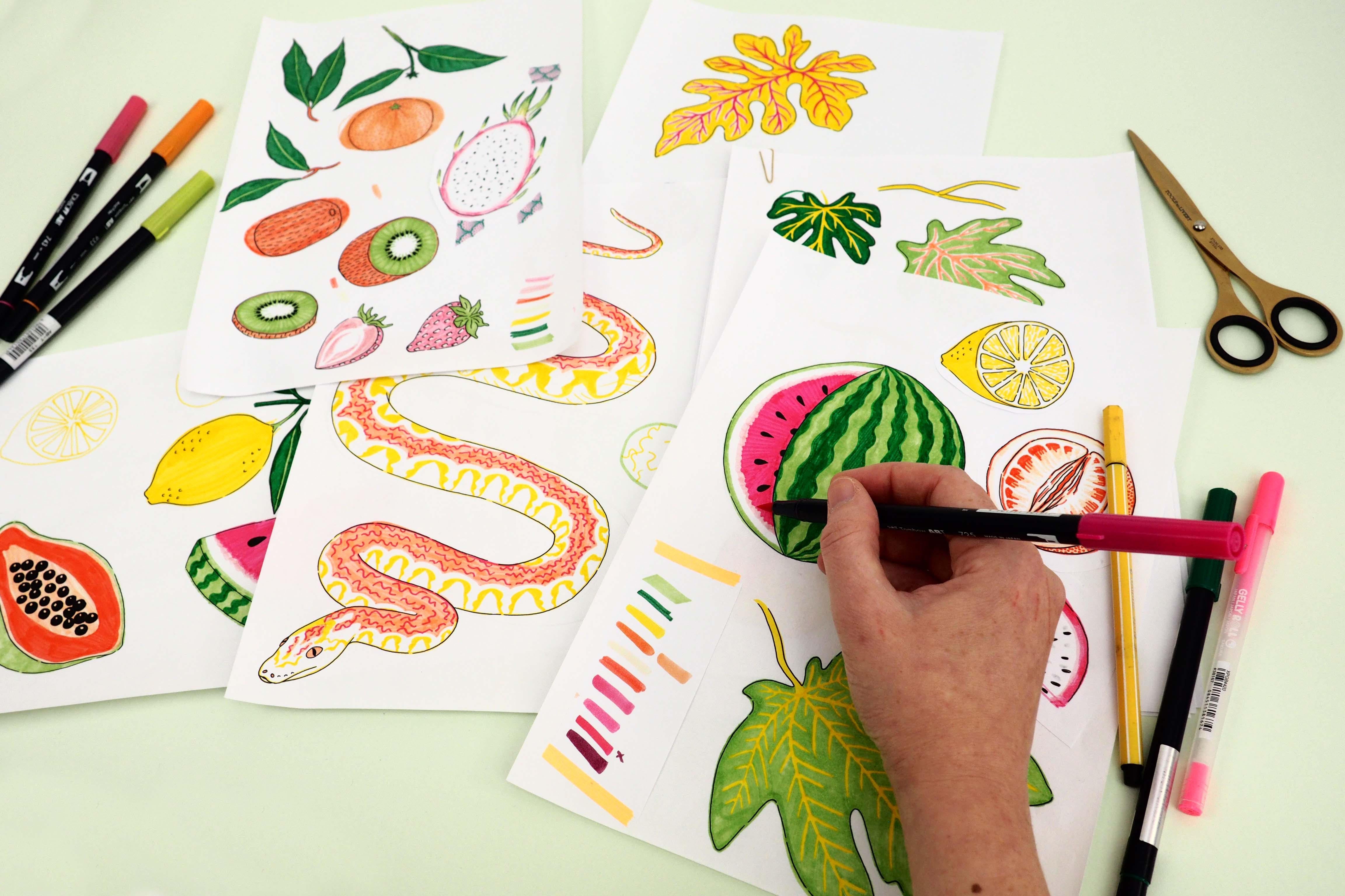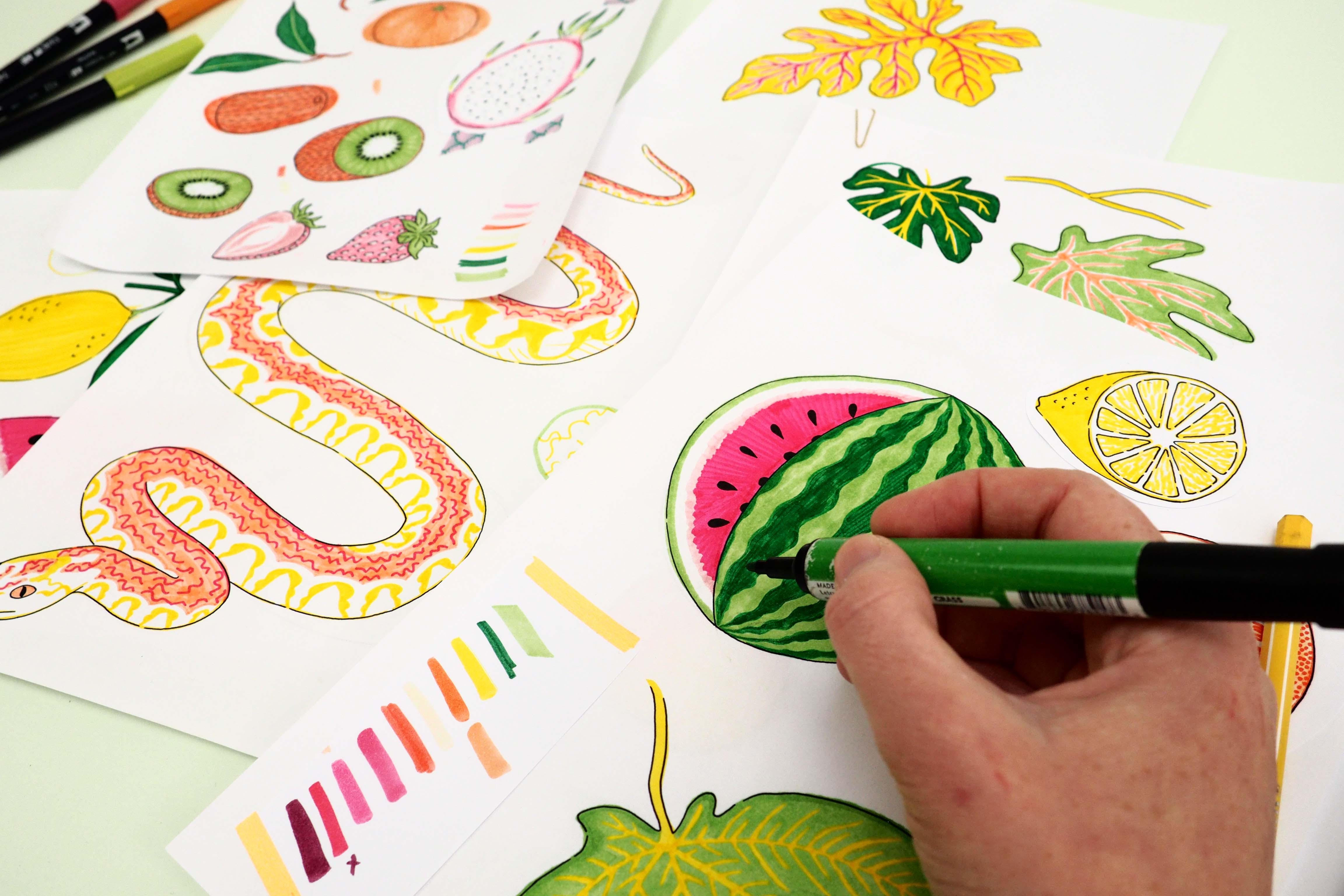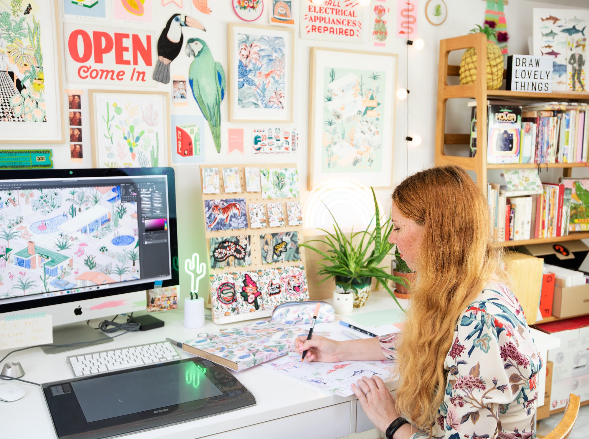 is an Illustrator and Pattern Designer who works out of her home studio in Hackney. Specialising in creating intricate & explorable patterns and illustrations that defy the ordinary! She studied Visual Communication at Chelsea graduating in 2008 and moving to Stockholm to work for H&M followed by other High st Fashion Houses. After 6 years Jacqueline went freelance and began producing her own line of wall art and products as well as working with fun clients on illustration and pattern briefs!