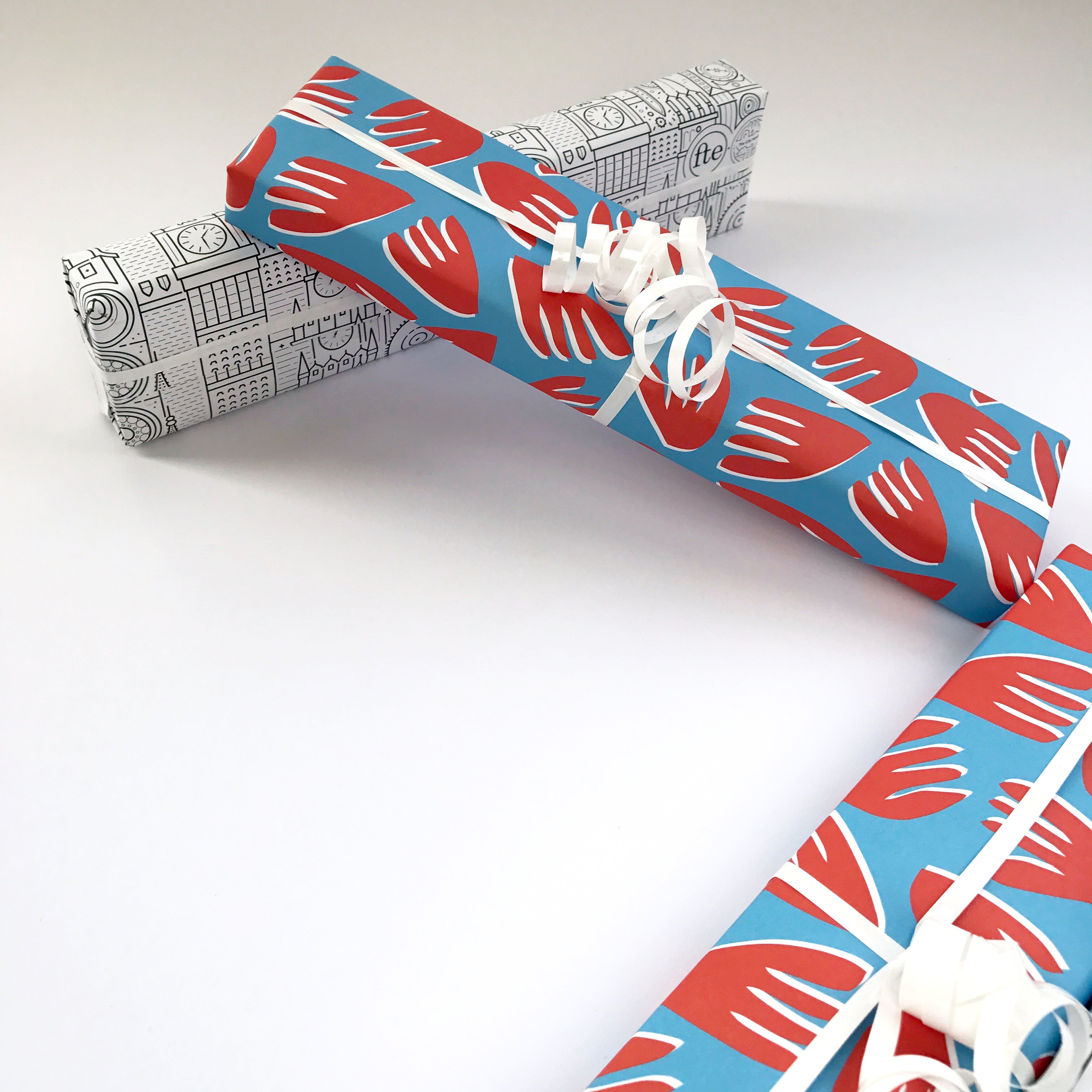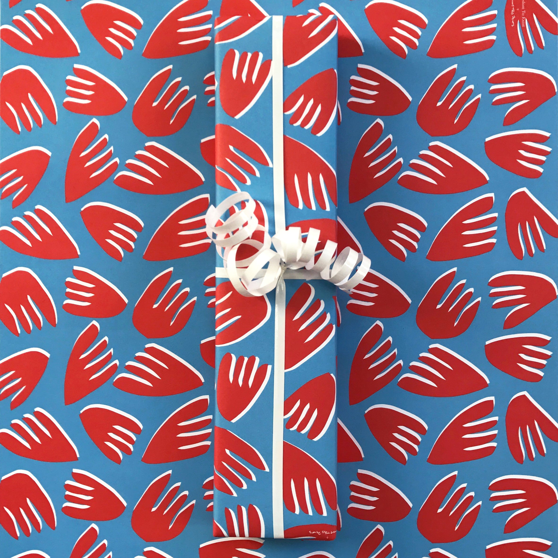 Sunny Todd Prints have teamed up with Freedom To Exist to create wrapping paper in an exclusive colour combination of their bold signature Floral design in Sky Blue, Red and White.