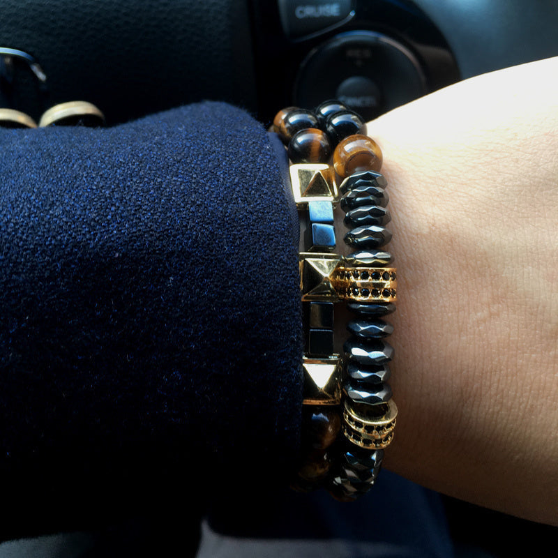 Cubic Zirconia Matte Beads with Hematite Beads DIY Charm Bracelet for Men