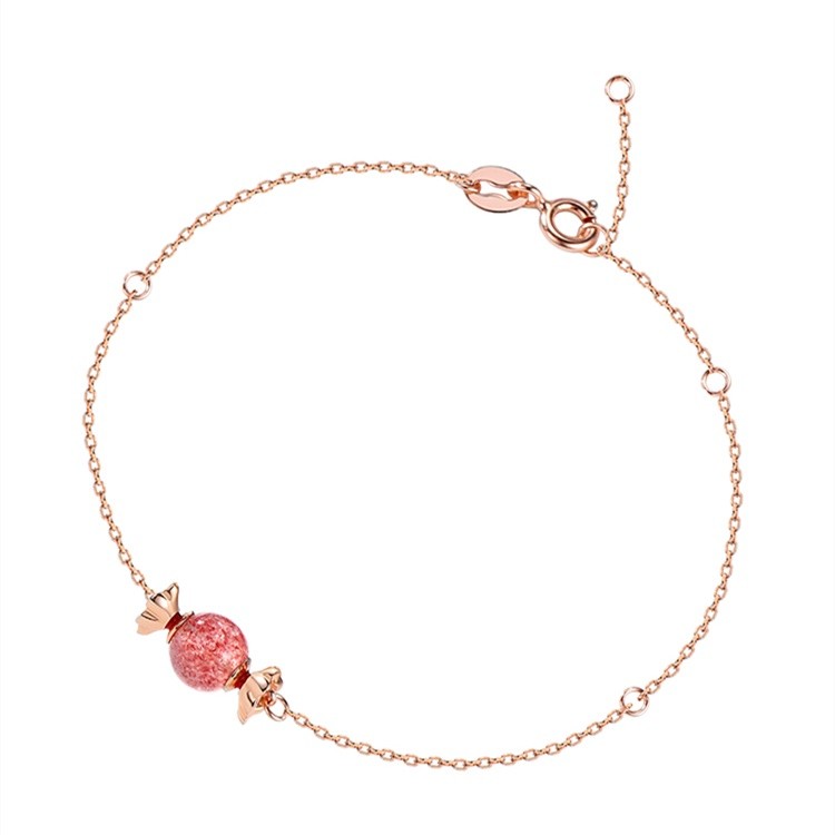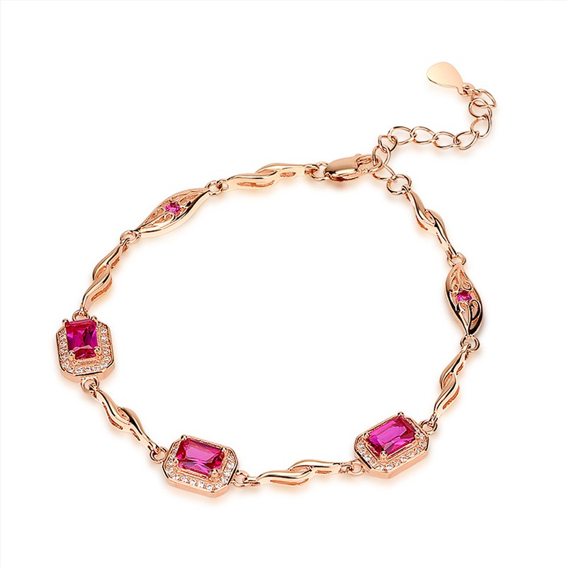 New Sweet 925 Sterling Silver Plated Rose Gold Inlaid Red Corundum Bracelet