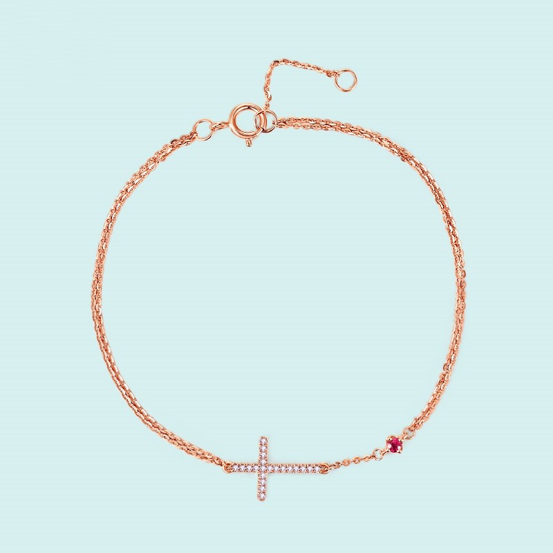 Unique Rose Cross Ruby birthstone Bracelet For Women In 18K Gold