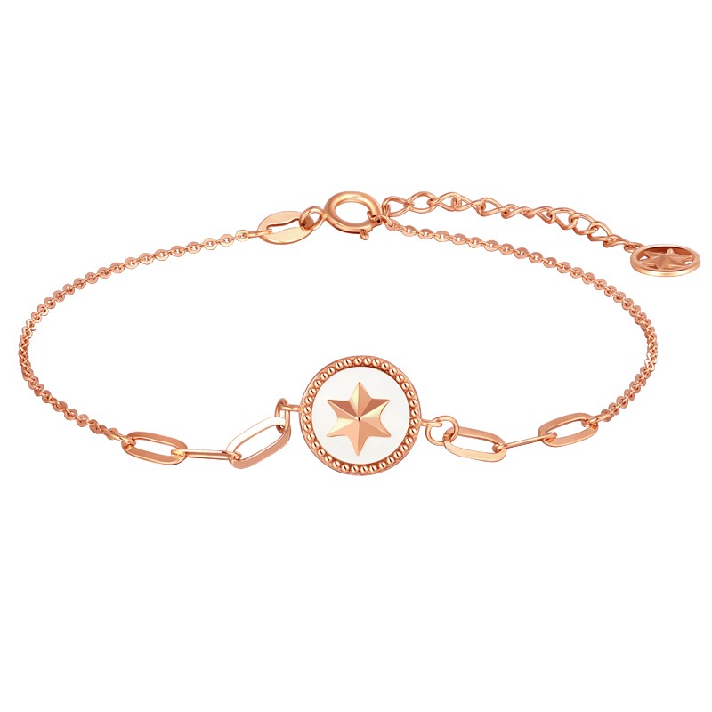 Unique Rose Star Charm Bracelet For Womens In 18K Gold