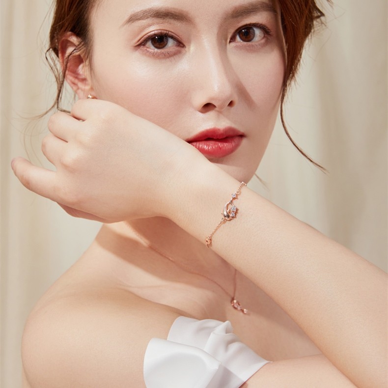 Unique Rose Dolphin Charm Bracelet For Women In 18K Gold